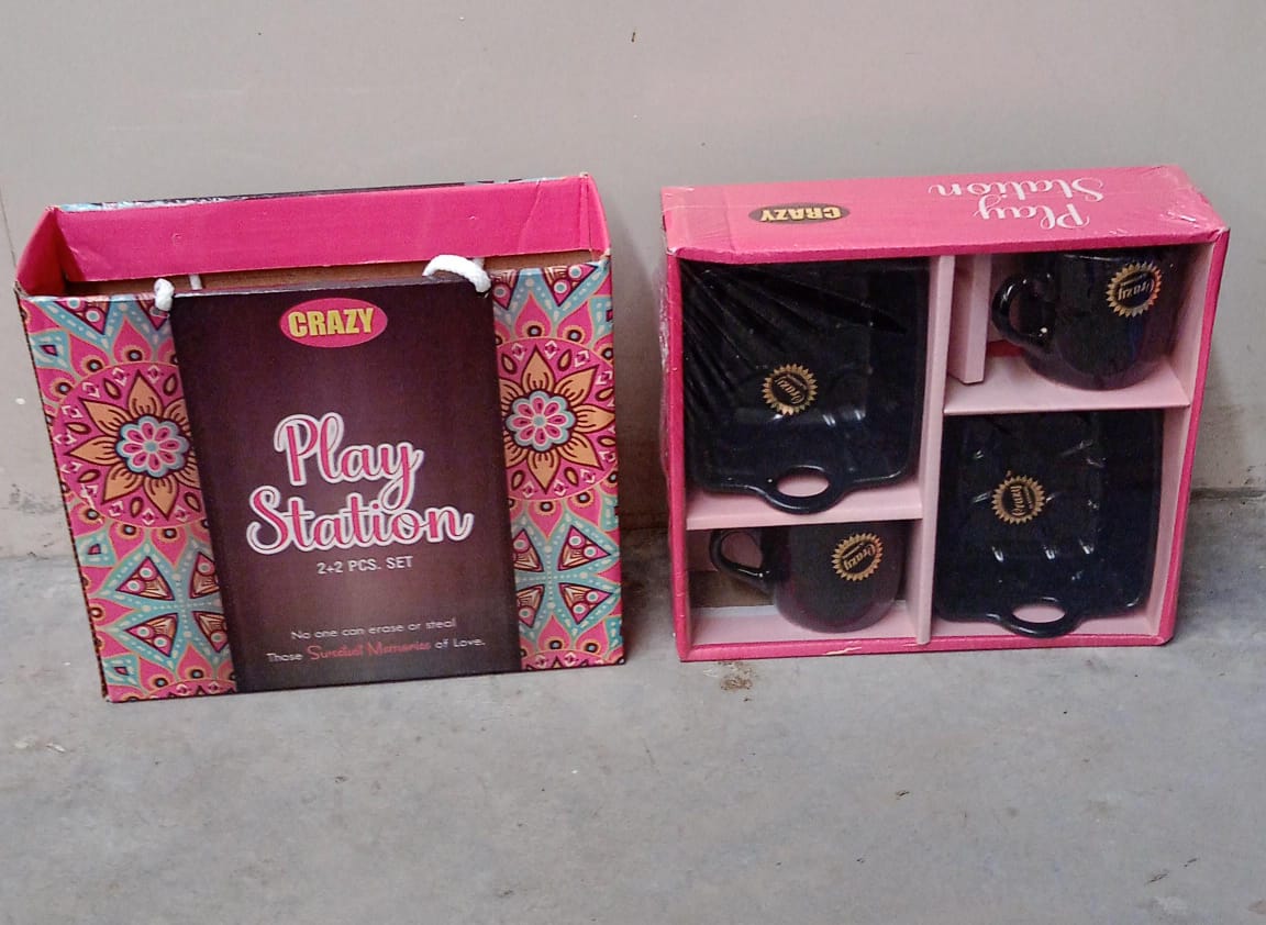 8229 Play Station Ceramic Tea / cups / Mug Set With Handle Serving Bowl Milk Cup, Coffee Cup, Tea Cup, Breakfast Cup, Drinking Mug or Outdoor for Household, Gift for Birthday, Wedding Party (4 Pcs set)