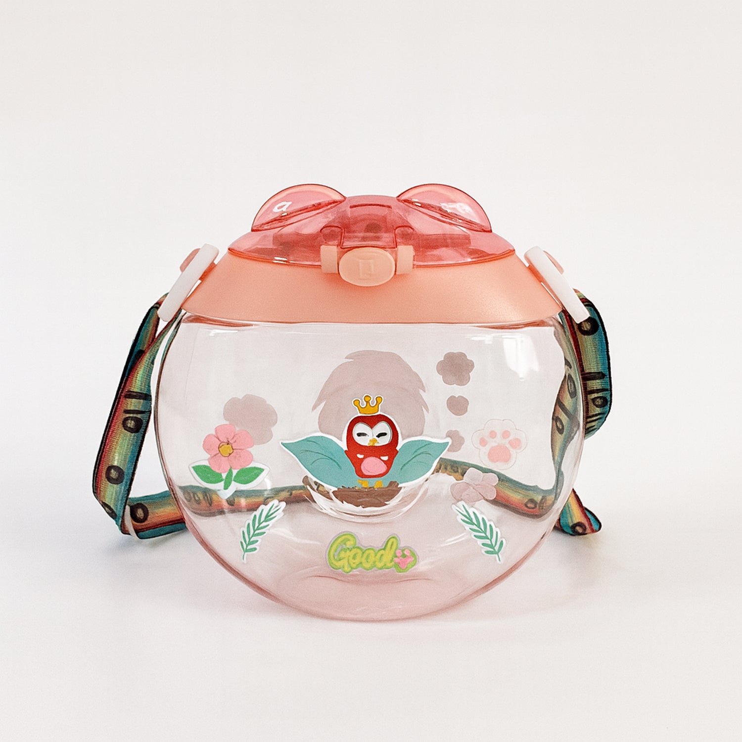 This 400 ML Round Belly Shape Kids Water Bottle is specially designed to make drinking water fun and easy for kids. Featuring a built-in straw, a secure leakproof flip-top lid, and a colorful adjustable strap, it’s perfect for school, travel, or outdoor activities. The transparent body is decorated with cute stickers and prints that kids will love, adding a playful and attractive touch. Made from safe and durable BPA-free plastic, this water bottle is lightweight, child-friendly, and built for daily use. Its ergonomic belly shape design makes it comfortable to hold, while the strap ensures hands-free carrying.